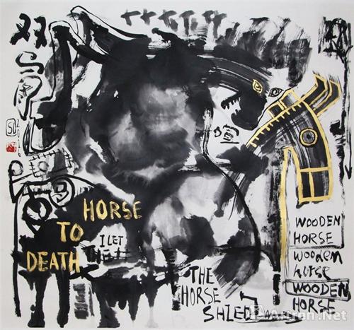 双马,纸本水墨,2016,97x90cm