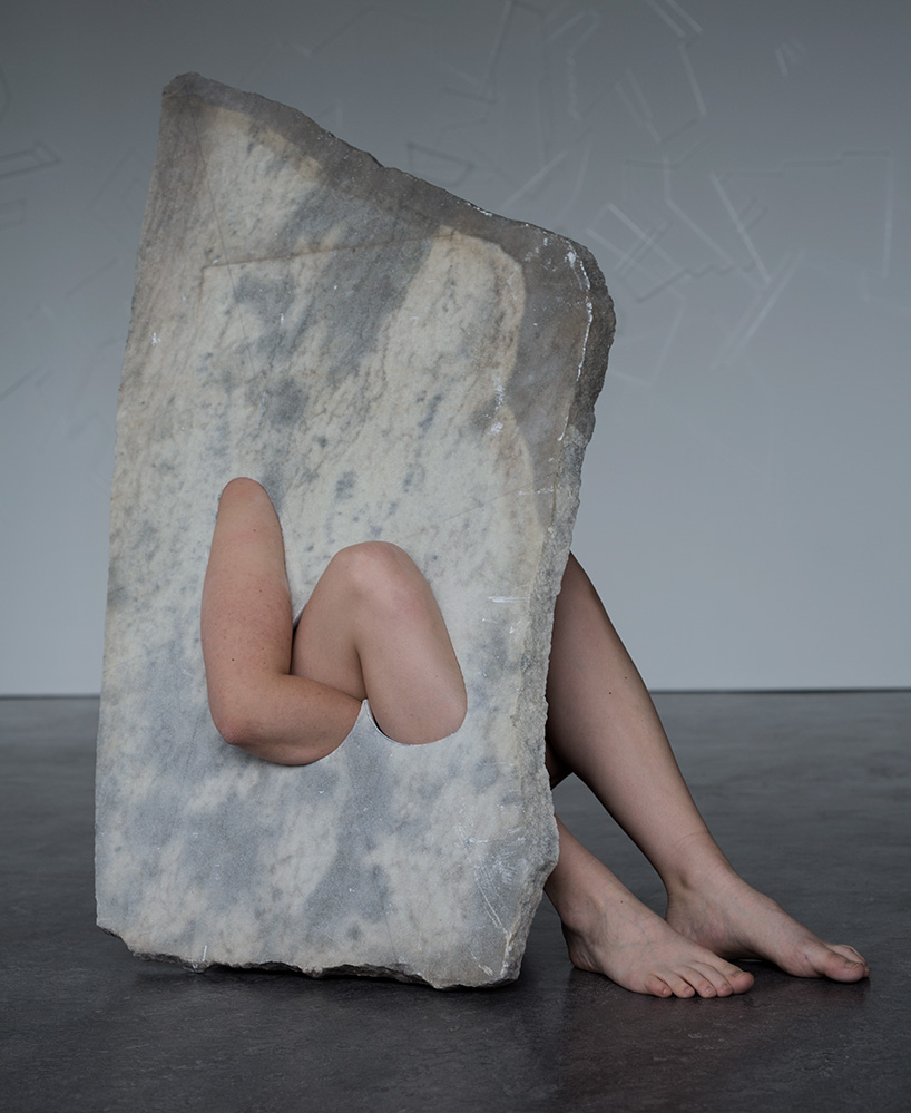 来自阿姆斯特丹的艺术家milena naef拍摄到了人体和大理石合二为一的迷人时刻,他在石板上小心地雕凿出孔洞,然后让人把肢体塞进洞里,从而实现人体和大理石的无缝对接。这两种元素—肉体和石头—相互之间形成了鲜明的对比,但却流畅地构成了一个统一体。通过连接人体和石块,人的手臂和腿似乎也变成了石块的一部分,主体与客体之间的界限也变得模糊了。