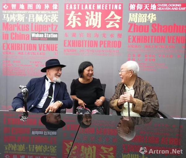 9月12日,“心智地图的异像:马库斯·吕佩尔茨在中国”和“俯仰天地:周韶华”双个展在湖北美术学院美术馆开幕。这是继上海中华艺术宫、北京清华大学艺术博物馆后,德国艺术家吕佩尔茨的作品第三次在中国展出,与之前不同的是,此次展览更侧重于中西两位艺术家的对话,吕佩尔茨与周韶华对于本国艺术传统的探索、对于艺术家身份的探索与重塑,让展览生发出更多的艺术形态的探讨。