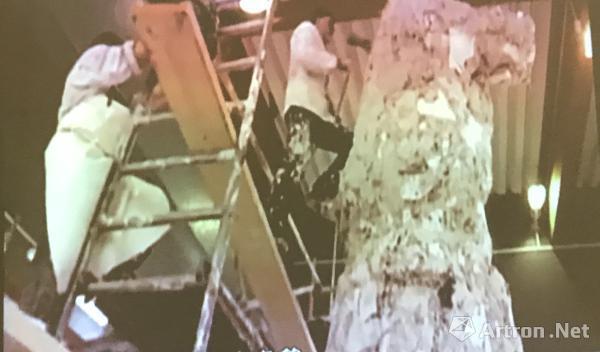 观看中,吕佩尔茨不时陷入回忆,“这是我做的一个公共雕塑,18米高,当时是冬天政府为了这尊雕塑都封路了”;“我创作的时候无法慢下来,你看我用喷枪的时候都来不及带防护罩”;“艺术家不应该有三、五十人的工厂,而应该亲力亲为”……视频中的吕佩尔茨在脚手架上,大刀阔斧地在巨大的雕塑上飞刀游走。