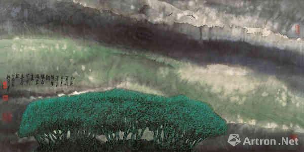 周韶华,《楚天听雨》,纸本水墨,68cm×136cm,2005