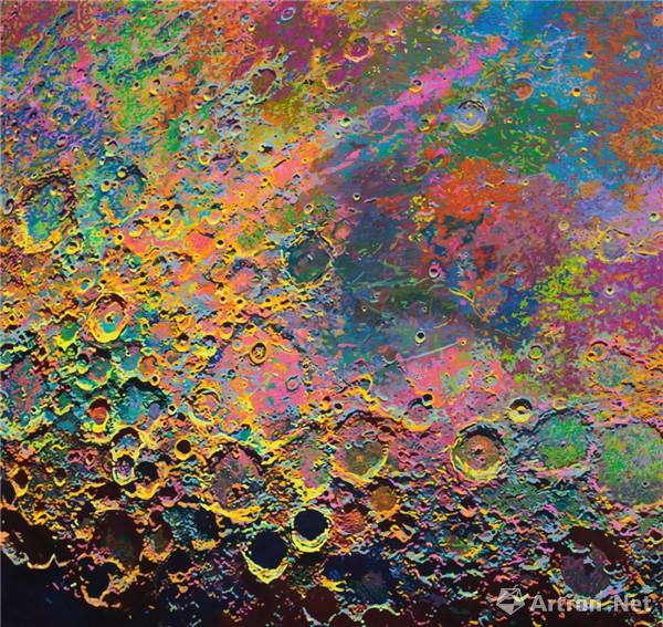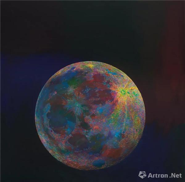 正如艺术家自己所说:“一个彩色的,超出人类认知的月亮也许才是月亮的本色。照片发明以后,人们长期以来看到的都是黑白无色的月亮。这种先入为主的观念甚至在彩色照片发明之后依然没变。人们对自我的有意识认知与同一个自我所勾画的衍生形象之间互不知晓。彩色月亮正变得无法辩驳。”艺术家通过高清摄像头观察月球,以动态影像捕捉月球。作品中月球的色彩是从油画颜料色谱提取,而艺术家在整个过程中观察到的月亮是黑白的。