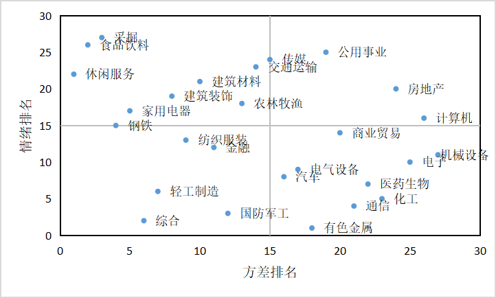 采掘、食品饮料、公用事业、传媒、交通运输等行业情绪向好。