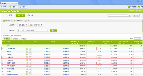 有意思的是,在刚刚结束的2013百度世界大会上,李彦宏在演讲中称百度每天的App分发数量达到6900万次,已是国内第一大的移动App 分发平台。就在大会前一天,DCCI恰逢其时的公布调查数据也利好于百度,更好地为李彦宏演讲做铺垫。