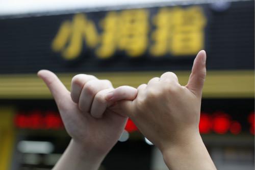 图片一:勾起小拇指 竖起大拇指