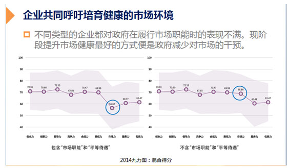 “值得关注的是,报告显示,三种所有制企业均对政府在履行市场职能时的表现不满,他们共同呼吁需要培育健康的市场环境。所以,现阶段提升市场健康最好的方式便是政府减少对市场的干预。”吴晓波教授在分析时指出,良好的商业环境无疑成为了所有企业关注的核心话题。