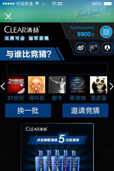 世界杯期间,清扬在新浪体育app中,结合“竞猜项目”的需求进行了定制化的“实时推广”,不论是开赛前还是开赛后,都会有大量品牌露出。针对微博互动性特征,清扬竞猜还邀请微博好友和粉丝进行pk的形式,通过微博互动让品牌实现二次传播。