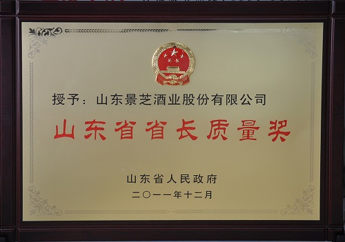 自2009年以来,景芝酒业认真贯彻落实山东省委、省政府振兴山东白酒工业调整规划,始终坚持“质量第一、诚信至上”的理念,构建九环溯源品控体系,建立健全食品安全管控、追溯体系,规范生产,诚信经营,全力打造山东特色白酒知名品牌,实现了企业健康快速的发展,企业在2011年荣获第三届山东省省长质量奖,成为迄今为止唯一获得此殊荣的山东白酒企业,充分树立了景芝酒业在行业的标杆位置。这顶意味着省政府肯定和褒奖的桂冠,前三届获奖酒企获奖企业是青岛啤酒、张裕葡萄酒、景芝酒业;一啤、一红、一白,三个酒种的领军品牌也代表着山东酿酒企业的最高水平和质量标准。