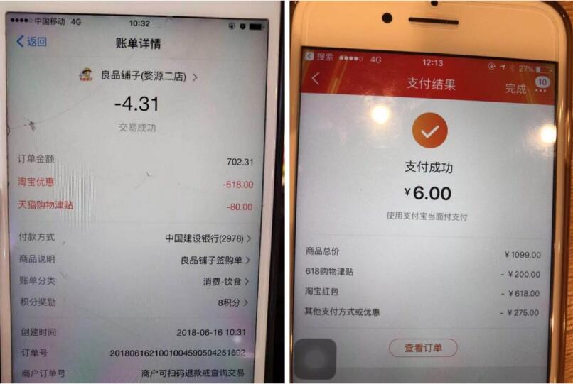16日中午,在运动服饰品牌哥伦比亚天猫智慧门店(上海徐家汇港汇店),一位顾客叠加使用了天猫618津贴和红包,1099元的衣服使用优惠后最终只花了6元。在良品铺子的江西婺源二店,一位顾客用天猫618津贴和红包后,只花了4元钱就买到了702元的零食。
