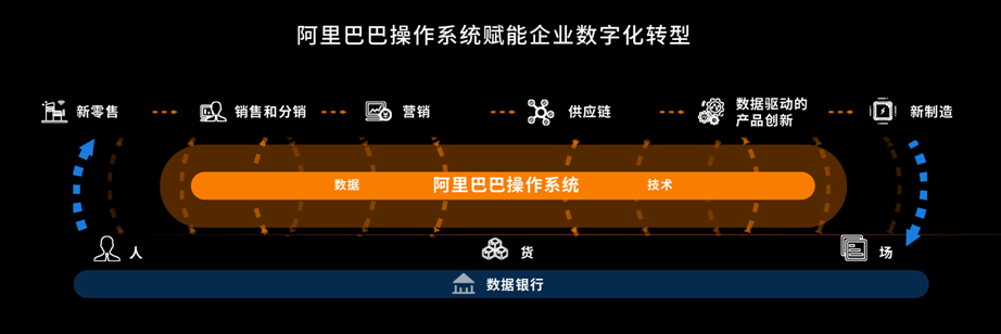所有这些变革的基础,正是企业经营数据和消费者数据的全域打通。未来每个个体和每个企业都将拥有一个数据银行。阿里巴巴商业操作系统的实质,也正是通过赋能商家去服务消费者。同时服务消费者和商家的阿里巴巴一方面布局消费者入口,一方面布局商家入口,各个部门之间既产生数据,又利用数据,形成一个庞大而丰富的有机循环。