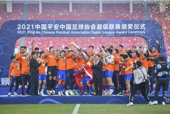 1月4日,2021中国平安中超联赛在广州正式闭幕,山东泰山时隔11年再次夺冠。2021年,新冠疫情带来的影响仍在持续,作为中超联赛连续八年的官方冠名商,中国平安在保险保障、医疗服务和科技领域积极合作,保证联赛平安、有序进行。颁奖仪式上,中国足球协会主席陈戌源与中国平安董事会秘书兼品牌总监盛瑞生一同为山东泰山队颁发火神杯。