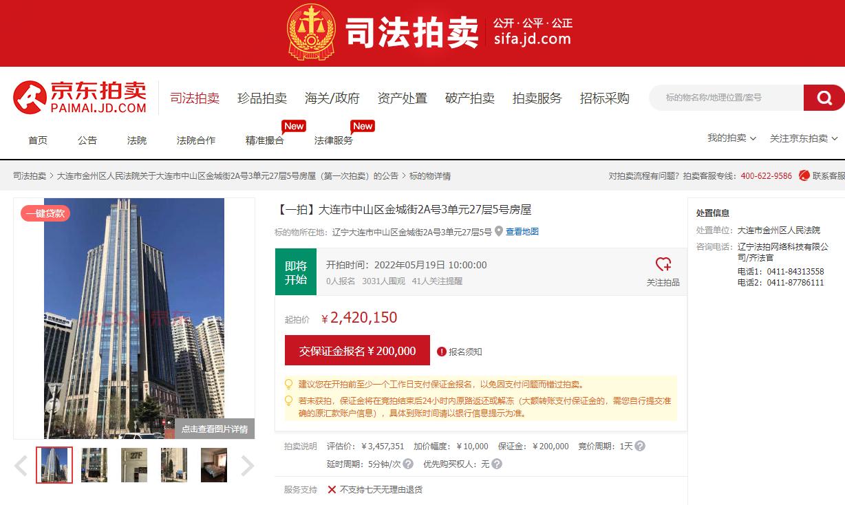 低于市场价起拍的法拍房逐渐成为置业一族关注的重点。位于北京市朝阳区双桥东路的三层别墅,超过400平米起拍价仅为1843万,远低于2620万的评估总价;大连市中山区金城街的一套精装修住宅式公寓,户型优越、视野绝佳,起拍价为242万;还有成都市成华区的大平层住宅,毛坯交付为新居留下无限想象空间,黄金楼层起拍价仅为428万。