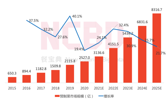 疫情高速推进预制菜行业发展,据NCBD数据显示,2021年中国预制菜市场规模已高达3000亿元,预计到2025年,更将突破8300亿元。