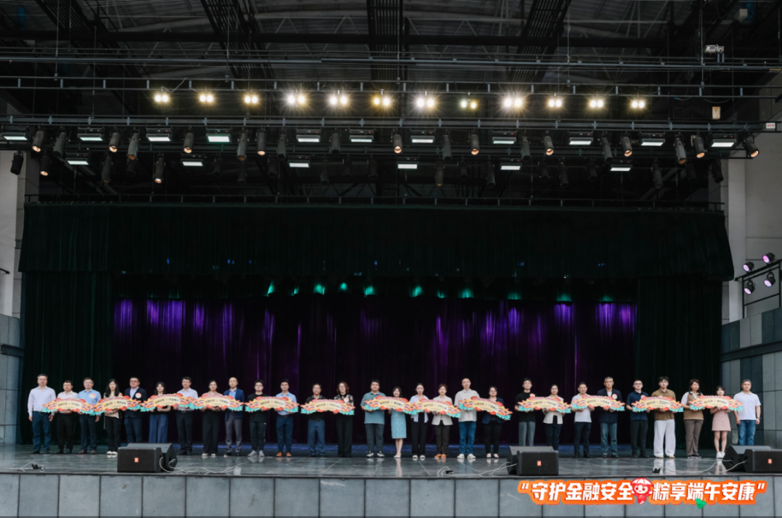 露天广场上,50张围桌错落排开,客家盆菜的醇厚香气与围坐居民的交谈声交织弥漫。宴席间穿插着金融知识互动环节:主持人随机抽取桌号,被选中的餐桌派代表限时抢答金融知识。当24号桌居民精准答出非法集资识别技巧时,全桌在欢呼声中接过端午福袋,现场氛围伴随答题进程层层升温,反诈宣教与民俗宴饮达成自然融合。