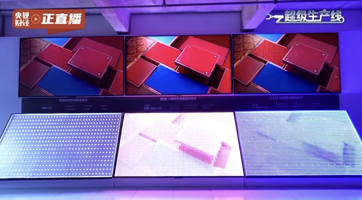 在海信全球研发中心,海信显示产品总裁刘为杰通过大型拆机对比装置,直观展示了RGB-Mini LED的技术原理。传统电视依赖单一白色或蓝色背光光源,需通过量子点或荧光粉进行二次色彩转换,就像“二手调色”,导致色域受限、能耗高且易出现光色偏差。而RGB-Mini LED直接采用红、绿、蓝三原色独立背光光源,每颗灯珠都是独立发光的,无需量子点二次转换,色彩更纯粹、更鲜活,相当于“一手直出”的原色呈现。