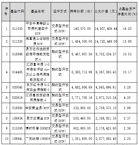 东方红颐和稳健养老两年FOF前十大重仓基金(截至2025三季度末):