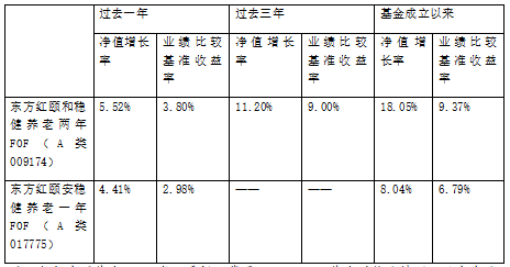 图:东方红颐和稳健养老两年持有FOF(A类)累计净值增长率与业绩比较基准收益率的历史走势对比图