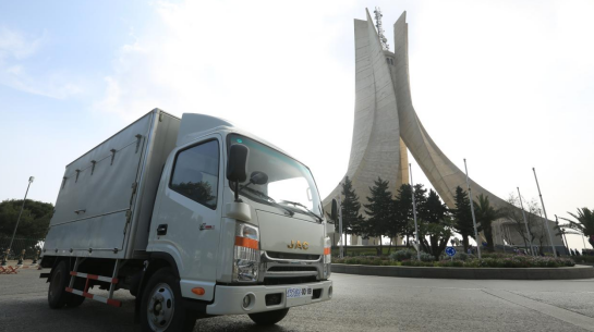 JAC轻卡与阿尔及利亚地标建筑(江淮汽车供图)