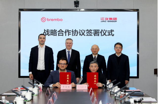 中国主要汽车制造商之一江汽集团(JAC)与全球领先的制动解决方案提供者布雷博(Brembo)2月5日签署战略合作协议,旨在加强长期合作,共同推动未来汽车平台的创新发展。