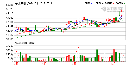 昨日,海康威视最新收盘价为52.01元,涨幅为3.65%,成交金额为1.12亿元。目前,该股的市盈率为33.17倍,市净率为7.27倍。