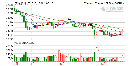 公司近日公告称,公司控股股东江苏文峰集团有限公司的全资子公司新有斐大酒店于2012年5月29日通过二级市场买入的方式增持本公司股份 125万股,占本公司总股本的0.2539%,累计投入资金1805万元,平均成交价格14.42元/股。本次增持完成后,江苏文峰集团和新有斐大酒店合计持有3.71亿股,占公司总股本比例为75.335%。大股东计划未来6个月内(自本次增持之日起算)继续通过上海证券交易所证券交易系统增持本公司股份,投入金额不超过人民币1.5亿元。