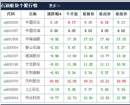 (成品油涨价,石油板块个股截至今日11:05最新股价。)