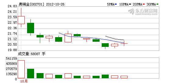 奥瑞金(全称:奥瑞金包装股份有限公司,股票代码:002701)于10月11日在深交所中小板挂牌上市,发行股票7667万股,占发行后总股本比例为25%,每股发行价21.6元,对应发行市盈率29.45倍,共募资16.56亿元,保荐机构为中信证券。
