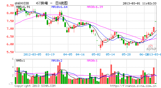 *ST珠峰定于3月6日披露年报。*ST珠峰在1月末的预盈公告中称,2012年度经营业绩将实现扭亏为盈,实现净利润约7340万元,归属于上市公司的净资产约为344万元。公司当时在说明事项中表示,如2012年度经审计的会计年报实现扭亏为盈,将及时向交易所提交撤销退市风险警示的申请。