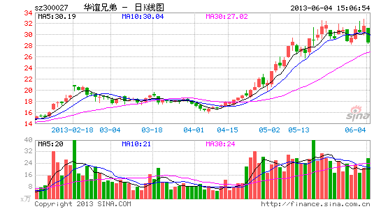 6月4日,华谊兄弟股价大幅跳水,盘中触及跌停,收盘价为28.55元,跌幅9.58%。