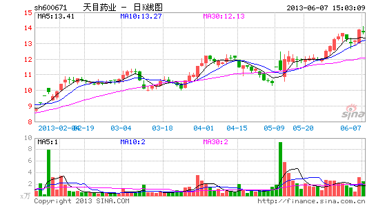 进入6月以来,A股频现举牌事件。继昨日东方银星(600753,收盘价9.59元)和康强电子(002119,收盘价6.85元)公告被举牌后,天目药业(600671,收盘价13.72元)今日宣布,自然人韩啸自6月6日起累计持有公司608.89万股 (占公司总股本5%)的股份,已构成对公司的“举牌”。而6月6日尾盘,天目药业股价也被拉升至2011年4月以来的新高13.90元/股。