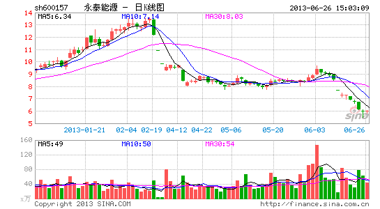 这一增持旋即被一泻千里的股市碾成炮灰。6月25日,永泰能源再度暴跌,收于5.96元/股,最低跌至5.47元/股。6月26日尽管迎来央行注入流动性利好,但永泰能源仅以微涨0.67%收盘。