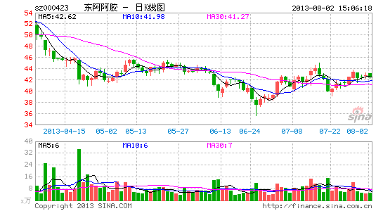 7月13日,山东东阿阿胶股份有限公司一纸公告,上调阿胶出厂价25%,零售价作相应调整。当日东阿阿胶股价上涨3.67%,之后几个交易日股价进行横盘调整。和之前的涨价理由相似,这次公告的焦点仍集中在原材料涨价,驴皮供应紧缺。据业内统计,2006年5月至今,东阿阿胶已累计涨价13次,出厂价从不到500元/公斤飙涨至1500元/公斤。