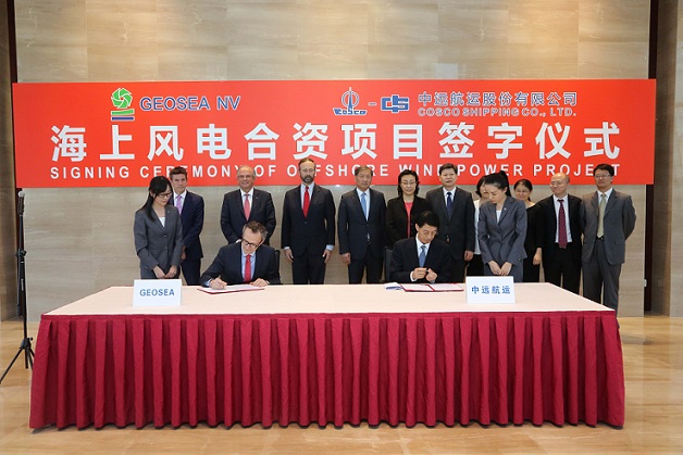 5月16日,中远航运股份有限公司和比利时海工巨头DEME集团旗下的GeoSea NV公司签署合作协议,双方同意设立合资公司“广州中远海运德利新能源工程有限公司”,这标志着中远航运正式进军海上风电运输+安装市场。同时,为满足国内参与工程项目对企业性质、工程资质等方面的要求,中远航运还将投资设立独资子公司。