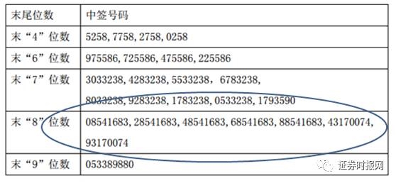不过从概率上来说,当数字处于中间区域时,中签的几率更大一些。所以,应避免在刚开盘时下单申购,特别是9点30一开盘就申购,可能会因为配号太短,中签的概率会小那么一丁点。我随便贴个中签号的图大家就明白了。