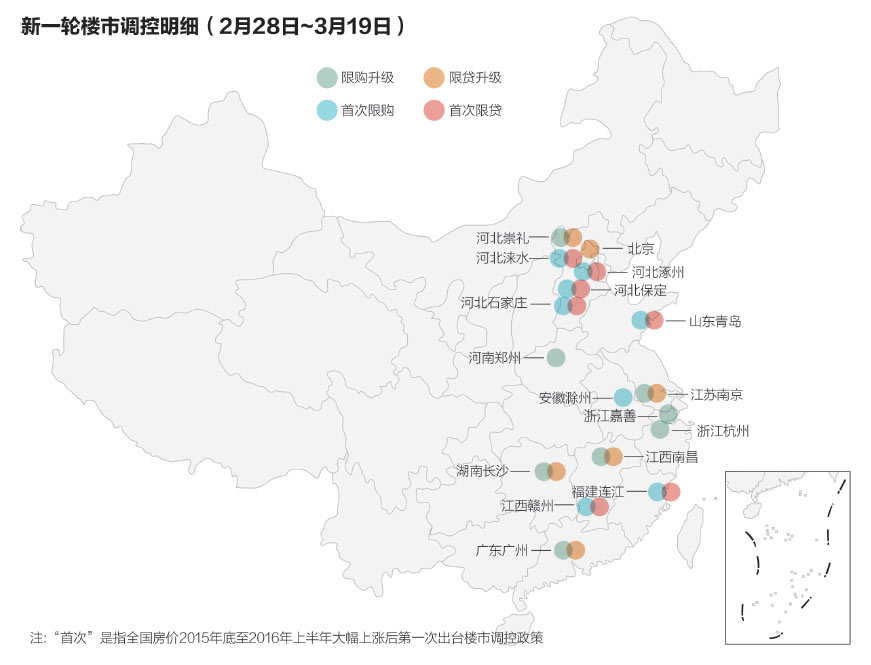楼市波澜再起。上周末(17日),北京出台房地产调控新政,实施“认房又认贷”,二套房首付比例提至60%。广州、石家庄、郑州、长沙、保定相继跟进收紧,全国17个城市20天内密集出台了楼市调控新政。业内人士表示,此轮调控政策将有效缓解现阶段市场恐慌情绪,令购房者预期保持稳定,进而使得房价波动总体可控。