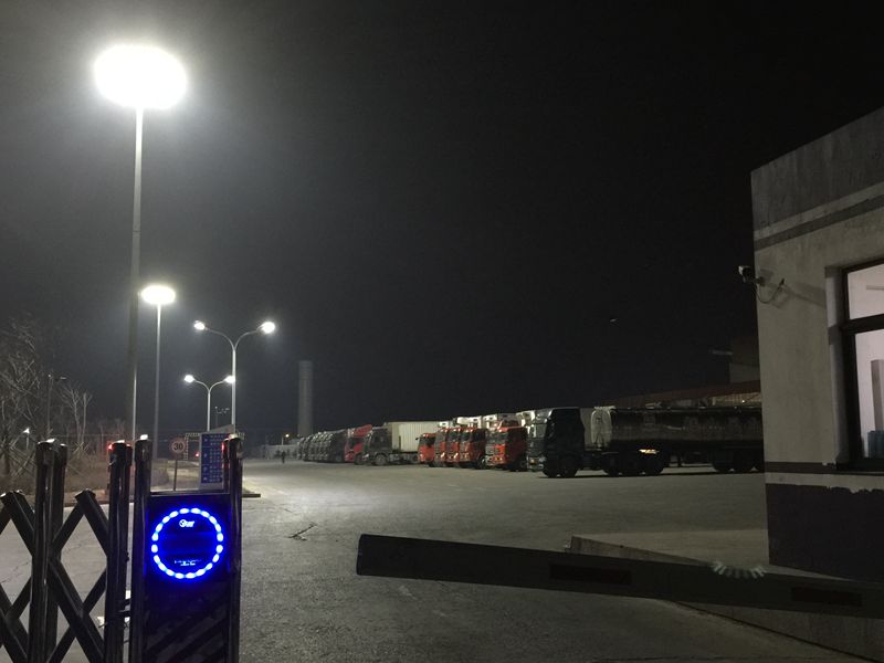 (图为进出厂区的运货车辆)
