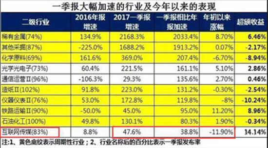 2017年一季报以来,传媒板块获得较大幅度增长。值得注意的是,游戏行业门槛进一步提升,有深厚积淀的老牌游戏公司分享了更多的市场份额,2017年1-3月除腾讯和网易两大巨头外,以完美世界(002624)、昆仑万维(300418)、天神娱乐(002354)、游族网络(002174)为代表的A股上市公司也稳定在国内收入排行榜的前列。