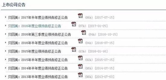 值得注意的是,近几年来,贝因美早已成为业绩“变脸”的惯犯。据澎湃新闻统计,2013年至今4年来,贝因美第八次发布业绩预告修正公告,业绩“变脸”频率堪称“变脸王”。