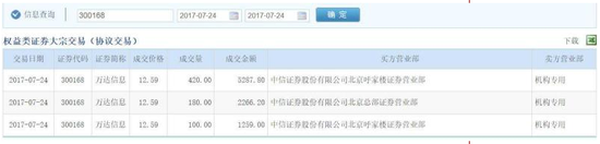 媒体记者注意到,在万达信息7月24日的大宗交易,接盘方来自中信证券北京呼家楼营业部和中信证券北京总部营业部,而这两家营业部正是2015年股市大跌中国家频频现身的营业部。