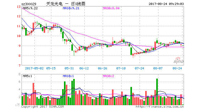 由于业绩持续低迷以及面临被暂停上市的风险,天龙光电股票在二级市场也持续承压。交易行情显示,截至8月23日收盘,天龙光电的收盘价为9.1元/股,今年以来累计跌幅达40.05%。而在2016年5月5日-12月30日,天龙光电的控股股东常州诺亚科技有限公司(以下简称“常州诺亚”)还曾以14.07元/股的均价,增持了2005.4万元天龙光电股票。以天龙光电最新的收盘价来看,常州诺亚当初增持的股票目前已经处于大比例浮亏状态。