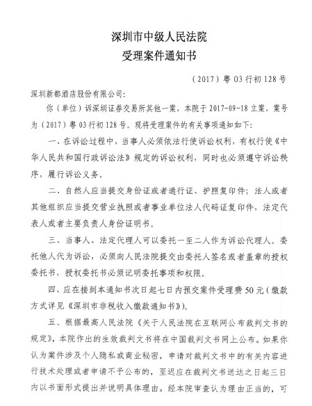 案件已经正式立案,案号为:(2017)粤03行初128号。(新浪财经 王茜)