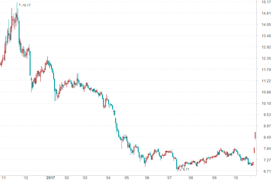 11月7日、8日,复制江南嘉捷两连板的节奏,乔治白也走出了两个涨停板,市值增加5亿多。这种连板盛况,在乔治白上市五年多来,只在2015年股市剧烈震荡后的反弹期间出现过。