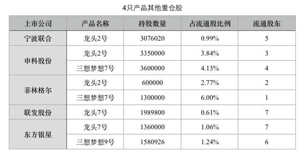 上市公司三季报显示,除了莎普爱思,这4只产品还以“两两组合”或者“单独出战”的形式出现在宁波联合(600051.SH)、申科股份(002633.SZ)、菲林格尔(603226.SH)、联发股份(002394.SZ)、东方银星(600753.SH)等5只股票的前十大流通股东。