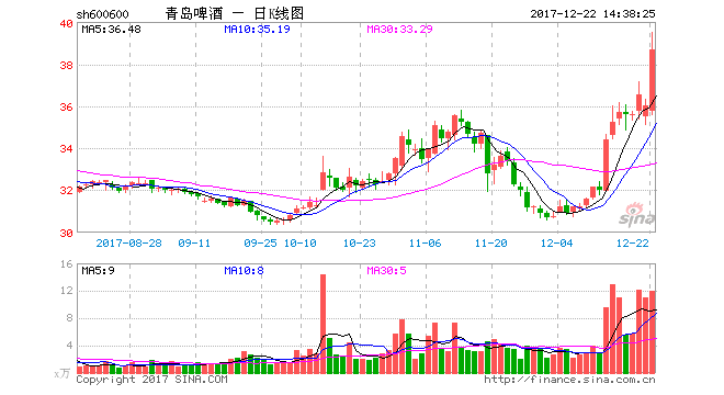 公告显示,本次交易计划将于2018年3月28日完成。据悉,青岛啤酒是中国最早的啤酒生产企业之一,主要品牌包括青岛啤酒、崂山啤酒、汉斯啤酒等,其历史可追溯至1903年由德、英两国商人投资设立的日耳曼啤酒公司青岛股份有限公司。目前,青岛啤酒在全国20个省、直辖市和自治区拥有60余家啤酒厂,年产量达80亿升,且远销至全球100多个国家和地区。青岛啤酒2017年第三季度报告显示,报告期末,其总资产达到325.53亿元,净资产为177.19亿元;前三季度累计营业收入为233.85亿元,对应的净利润为18.69亿元。