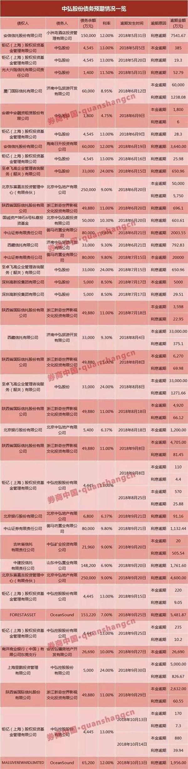 关键点4:56亿债务逾期,涉及银行、券商、信托等多家金融机构