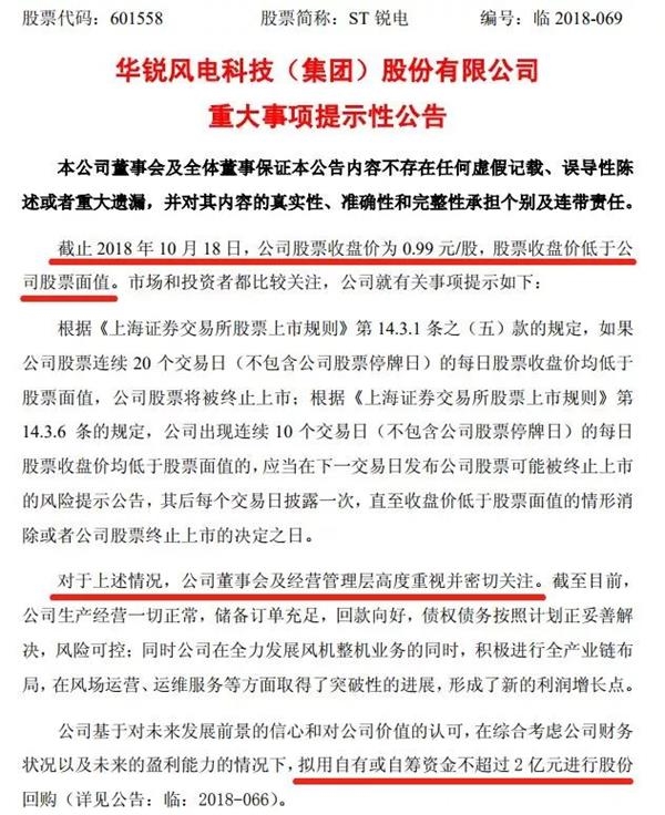 有意思的是,10月18日,A股市场又多了一只仙股——ST锐电。面对中弘股份的前车之鉴,ST锐电可不敢马虎,晚间发布过公告称,公司股价跌破1元,公司董事会及经营管理层高度重视并密切关注,并拟用自有或自筹资金不超过2亿元进行股份回购。