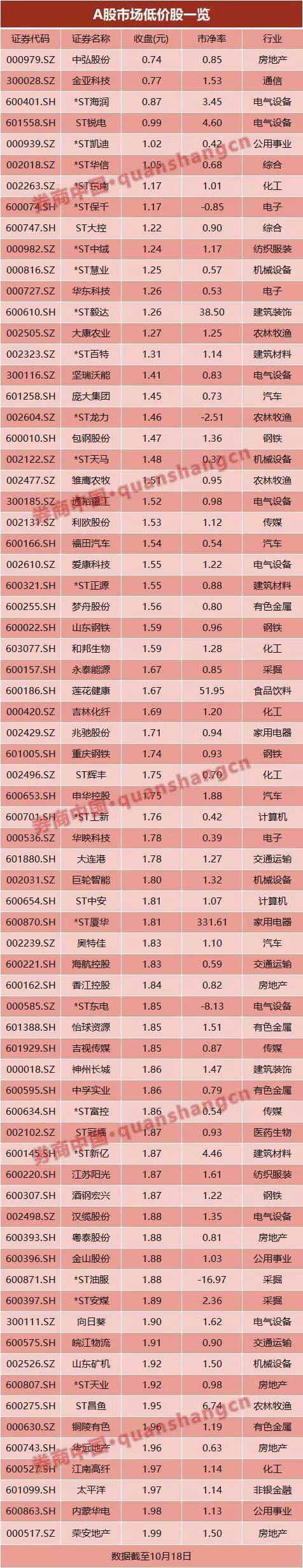 10月18日,A股市场又多了一只仙股——ST锐电:下跌4.81%,报收0.99元。
