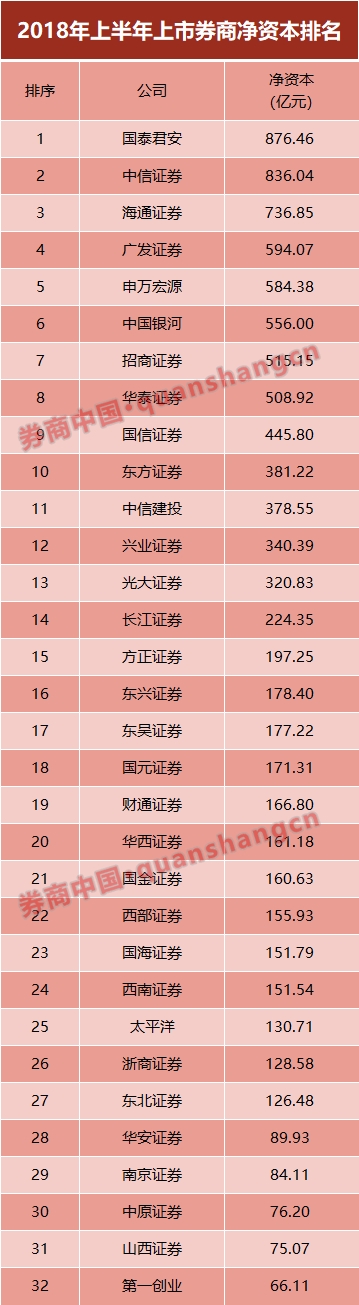 截至今年上半年,申万宏源的净资本584.38亿元,在上市券商中排名第5。