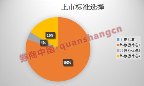 单就业绩水平来看,由于此前多家科创板企业系主板“更换赛道”而来,此前筹备标准均按照主板要求设计。其中,25家科创企业中,选择最为稳妥的“标准一”的企业共有20家,占比八成。