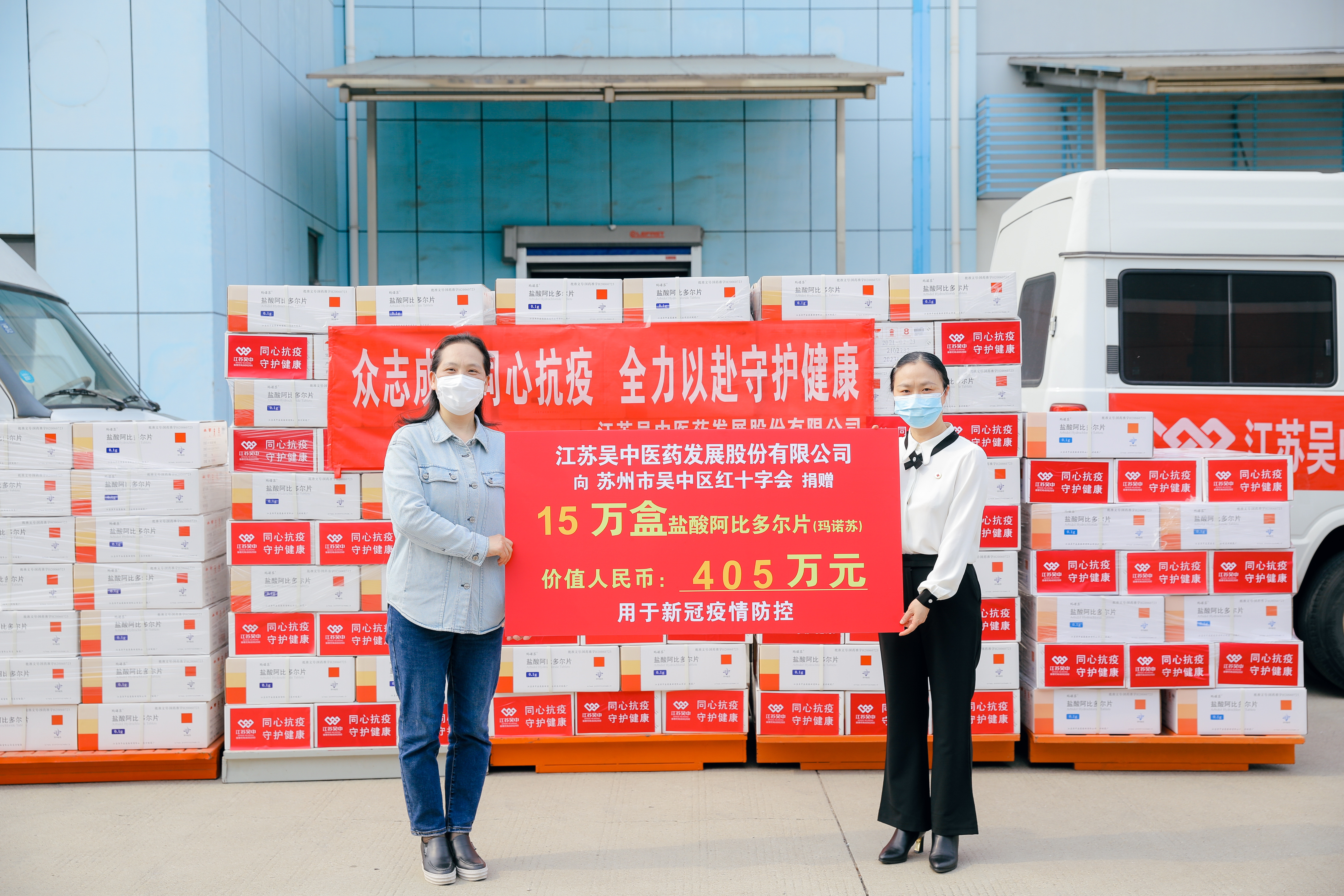其中,向苏州市吴中区红十字会捐赠15万盒盐酸阿比多尔片(玛诺苏),价值人民币405万元,用于新冠肺炎疫情防控。